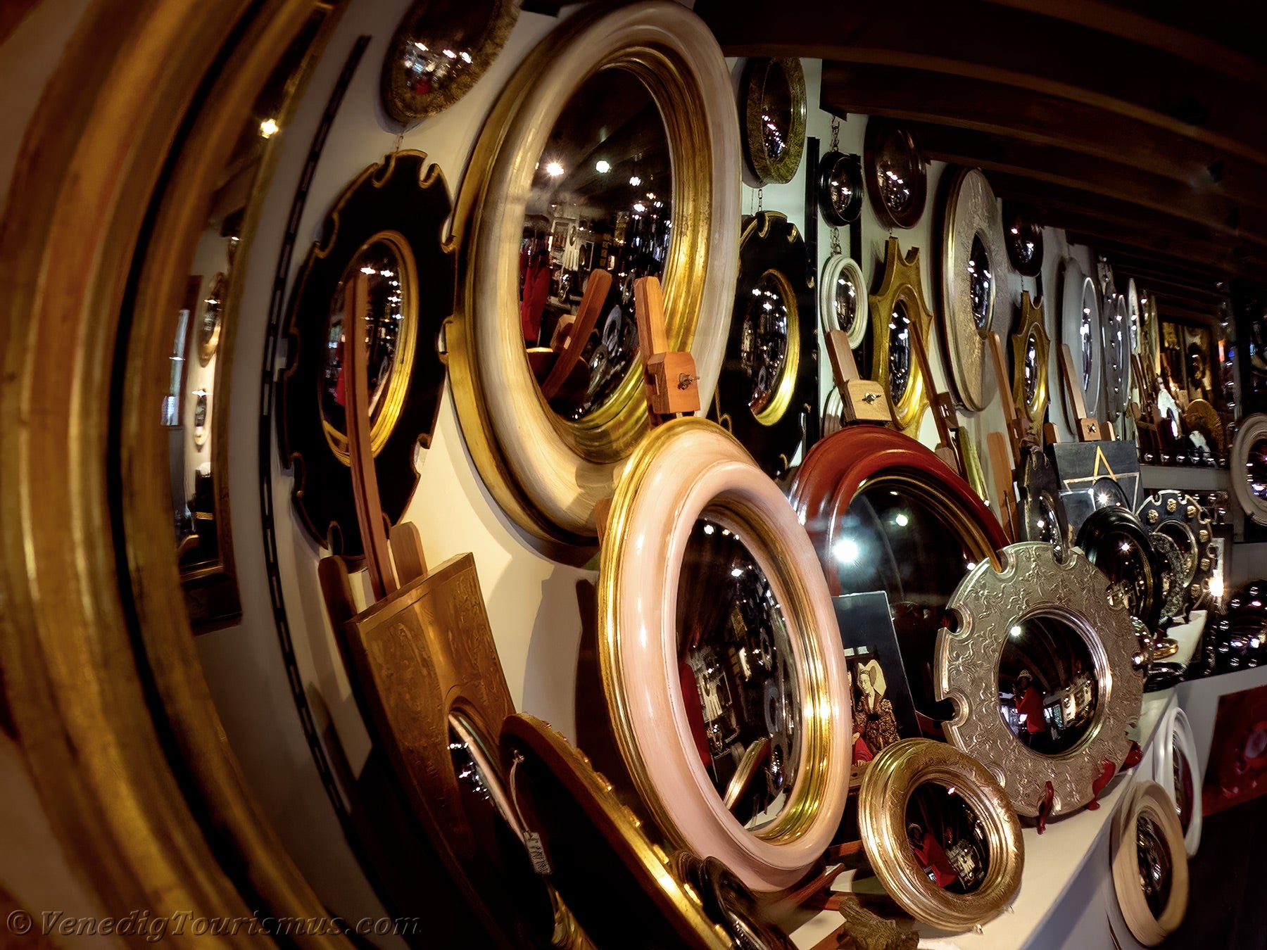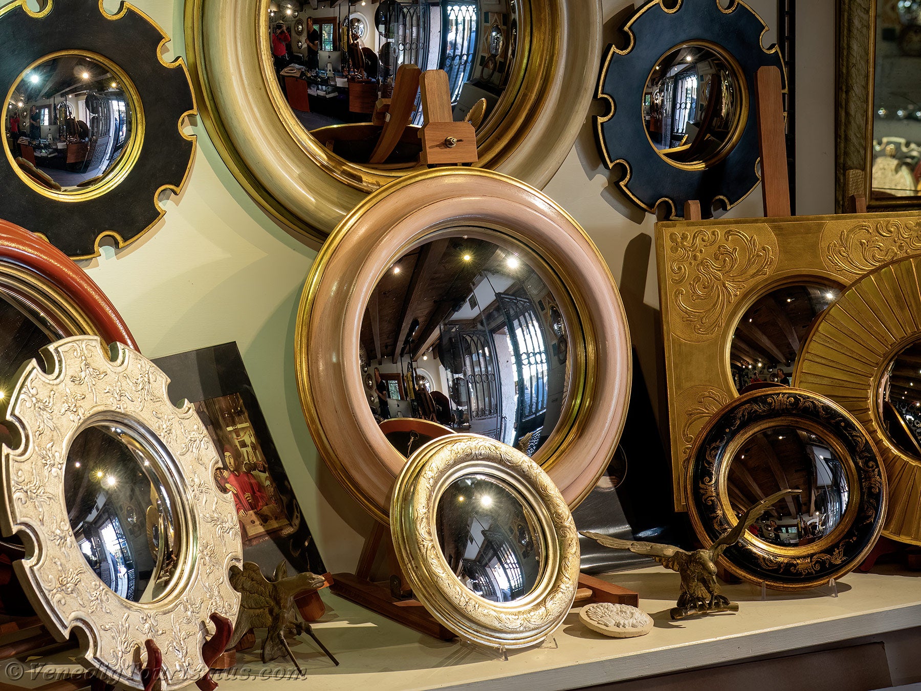 Konvexspiegel Canestrelli Ein Handwerker aus Venedig, Stefano Coluccio, hat den konvexen Spiegel von früher nachgebildet, den berühmten Spiegel, der als „Hexenspiegel” oder auch „Bankierspiegel” bezeichnet wird.